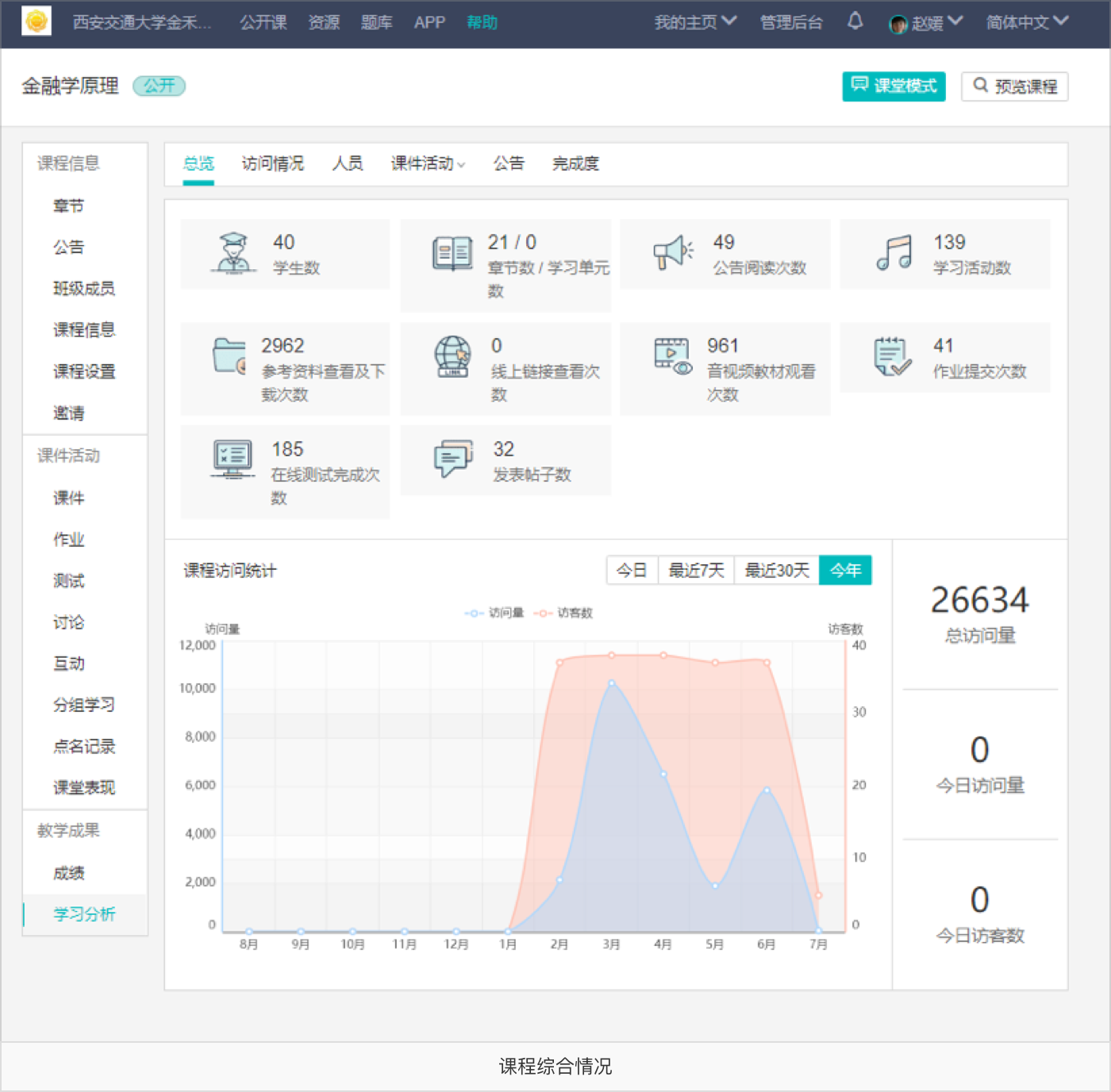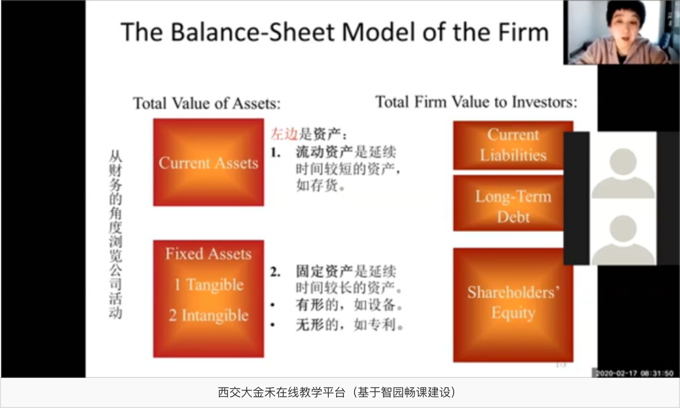 疫情期间,以《金融学原理》为例,每次我都会在课前上传教学课件和相关的讲义,课上进行直播授课,上完课以后再将实录上传至平台,方便学生在课后回看复习。在线上教学的时候,为避免学生分散精力,我会分节点去总结,然后提问,课上与学生进行对话,我提他答,然后我再来讲解。此外,我也会在课后创建一些讨论区,鼓励学生发帖提问,或者发布扩展阅读材料,同时也会布置单元和小组作业,及时检验学生对知识的理解和掌握程度。